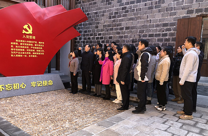 活动中,全体党员沿着习近平总书记的足迹走进六尺巷,在讲解员的引导下一边参观学习、一边聆听典故,在中国邻里和谐礼让典范的发生地,重温“六尺巷”的由来渊源和张、吴两家互谦互让的历史典故。在廉洁文化陈列馆,大家先后参观了“华夏千秋说廉史”“党史百年塑廉身”“桐城历代有廉风”等展厅,深入了解中国廉洁文化史、中国共产党史中的廉政建设和桐城廉洁文化,“沉浸式”体验了一堂生动的廉政教育课,进一步树牢“红线”意识和“底线”思维。观展结束后,全体党员列队肃立,举起右拳,面向党旗重温入党誓词,感悟初心使命、汇聚奋进力量。