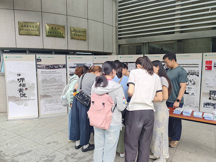 活动选取了70余张馆藏照片,通过多块展板,集中呈现学校在上海、怀远、合肥三地办学的珍贵场景,系统展示东南医学院初创、辗转办学及扎根合肥后的发展脉络。同时展出的还有徐叔云、汤蠡舟、于仲嘉等专家学者的教学用具、科研手稿、荣誉证书等实物图片,生动再现了前辈们投身学校建设的奋斗历程,引导师生深入了解校史校情。